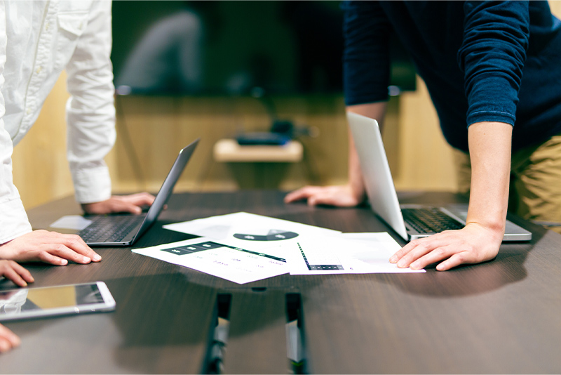 personas utilizando tecnologías digitales esenciales para crear un sitio web exitoso